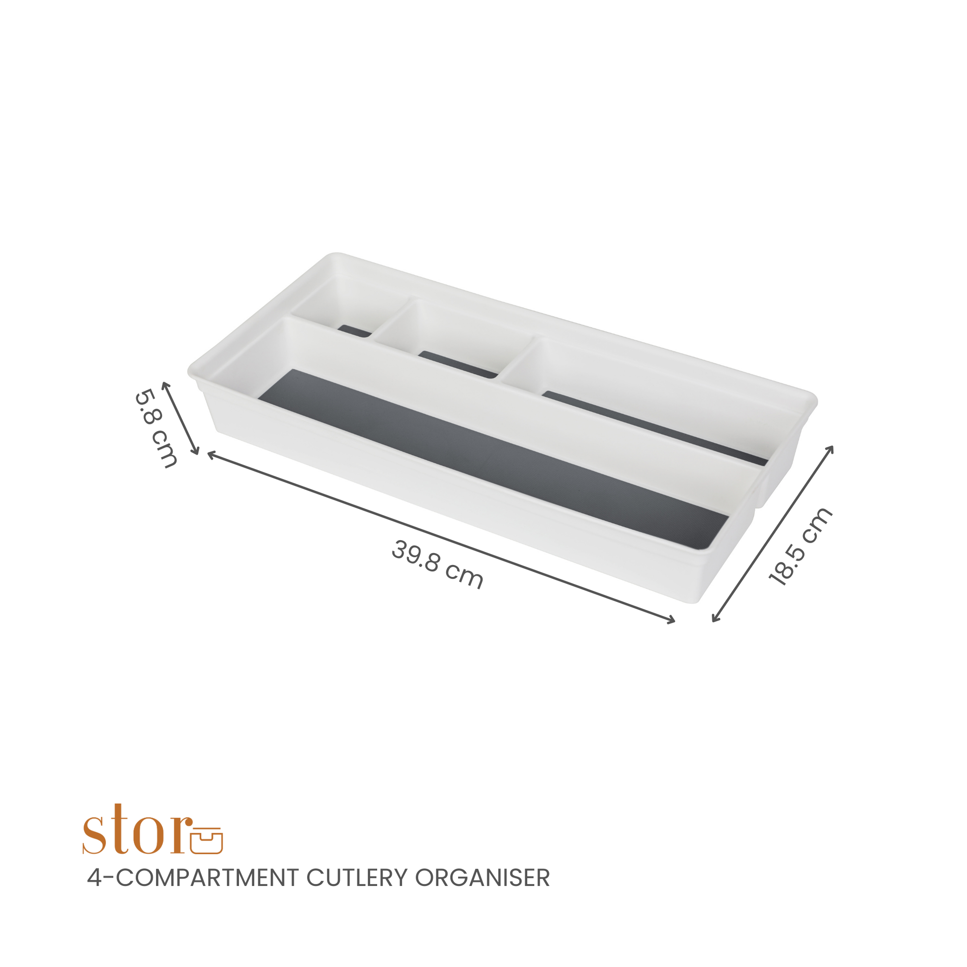 Keep your kitchen drawers neat and efficient with our 4-Compartment Cutlery Organiser, crafted from premium polypropylene with a TPR-lined base for a non-slip grip. The thoughtful design keeps your spoons, forks, knives, and tools neatly in place—perfect for everyday use and easy access.
