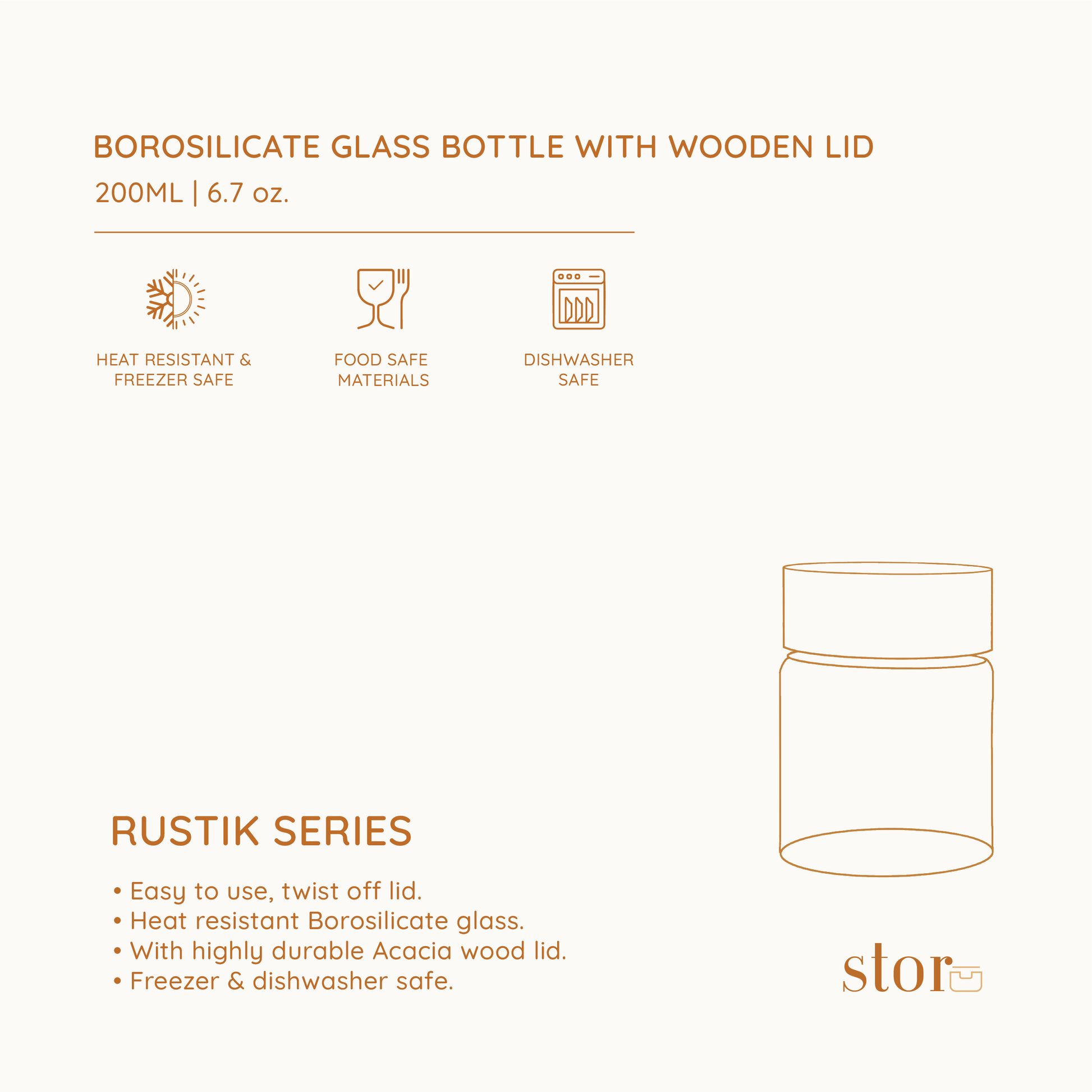 Elevate your kitchen storage with our Borosilicate Glass Storage Jar from the Rustik Series. Crafted from premium, heat-resistant borosilicate glass and topped with a natural Acacia wood lid, these jars combine beauty with functionality. Available in multiple sizes, they’re perfect for storing pantry staples like coffee, grains, pasta, and snacks—keeping everything fresh and visible.