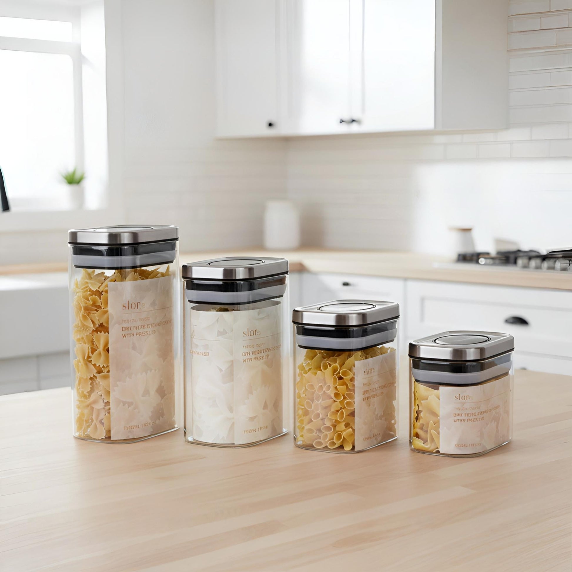 Keep your kitchen fresh and organised with our Glass Storage Container with Press Lid, crafted from premium borosilicate glass and topped with an airtight stainless steel press lid. Designed to lock in freshness, it’s perfect for storing pantry staples like flour, sugar, pasta, or spices. Lightweight yet durable, this container blends function and elegance for modern kitchen organisation.