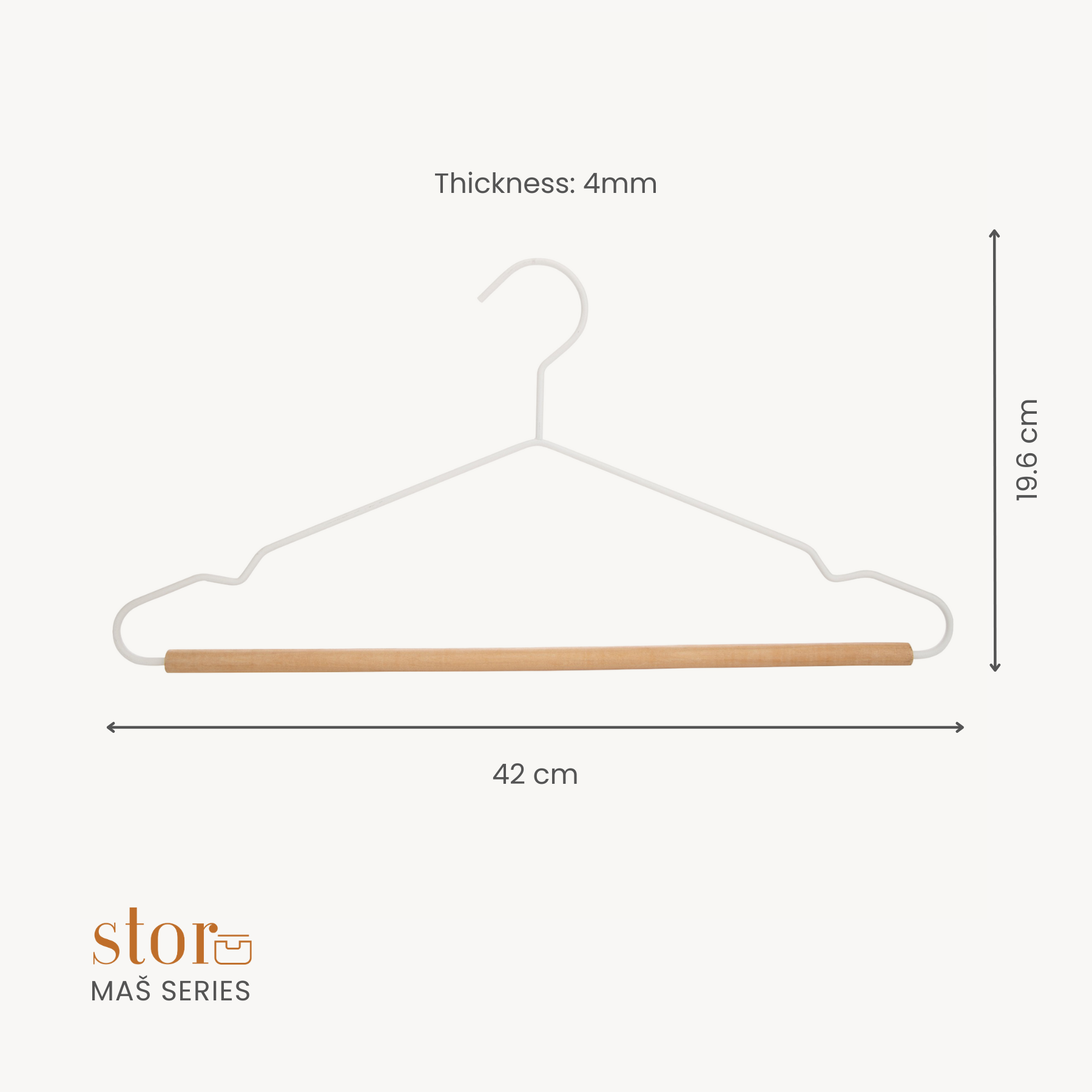 Metal Shirt Hanger with Wooden Bar- Ecru + Natural