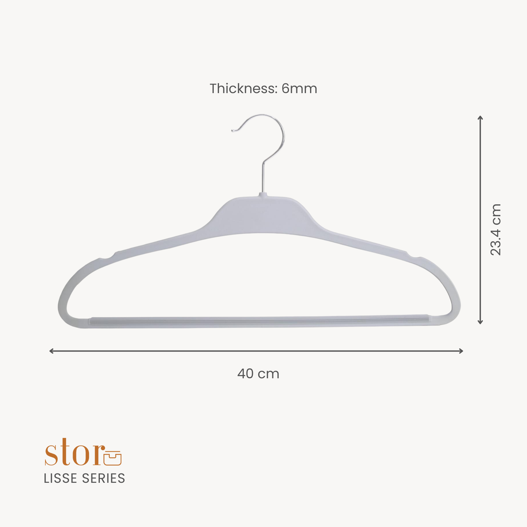 Crafted from premium rubberised material, these hangers offer a strong, non-slip grip to keep clothes securely in place. The slim, ergonomic design preserves garment shape while saving wardrobe space, and the smooth matte finish ensures long-lasting durability with a modern look.