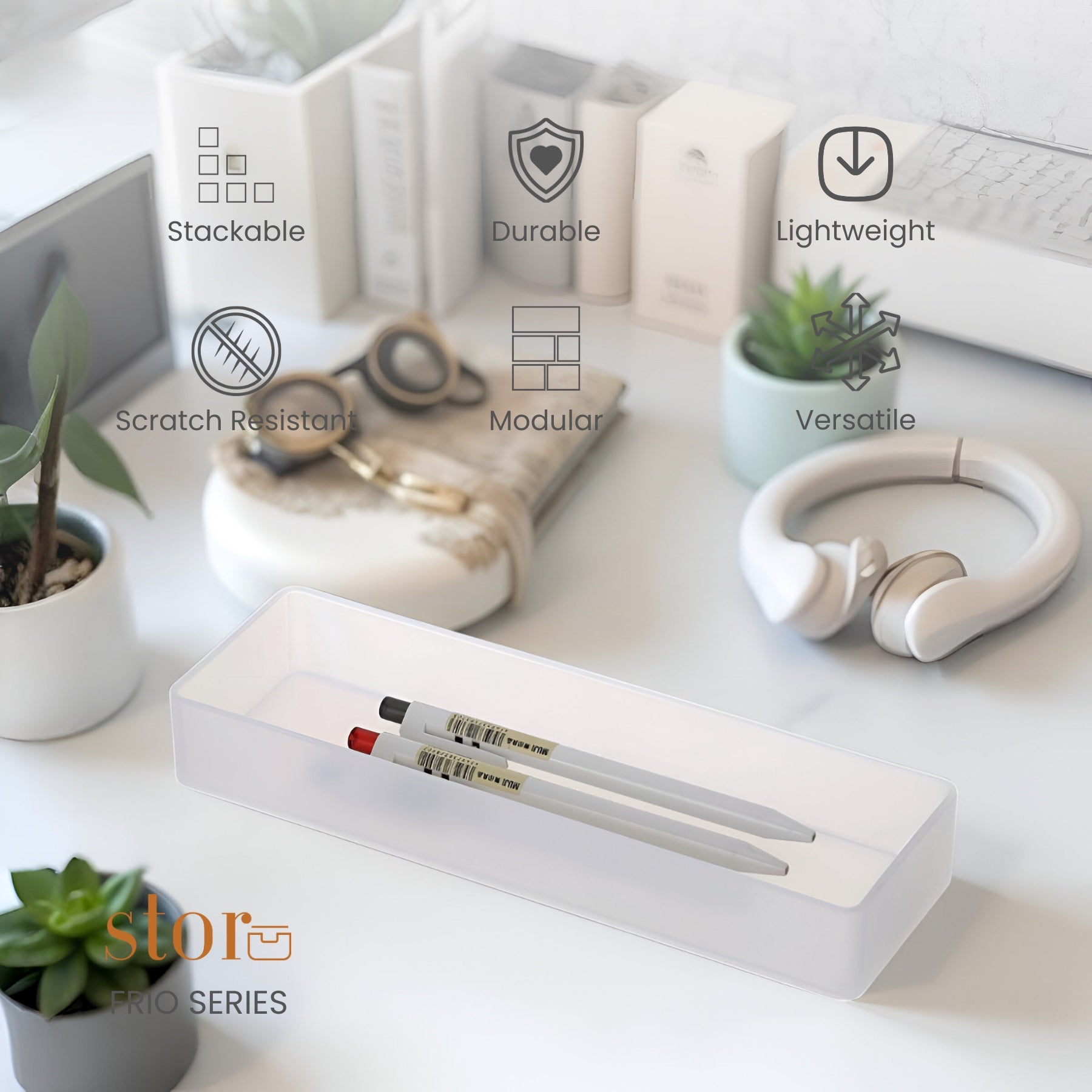 Declutter with ease using our Stackable Storage Organiser, crafted from durable, frosted white polypropylene for a sleek, modern look. Its modular, stackable design maximizes vertical space, making it perfect for closets, kitchens, offices, and bathrooms. Ideal for storing pantry items, toiletries, stationery, and more—keep everything organised and within reach!