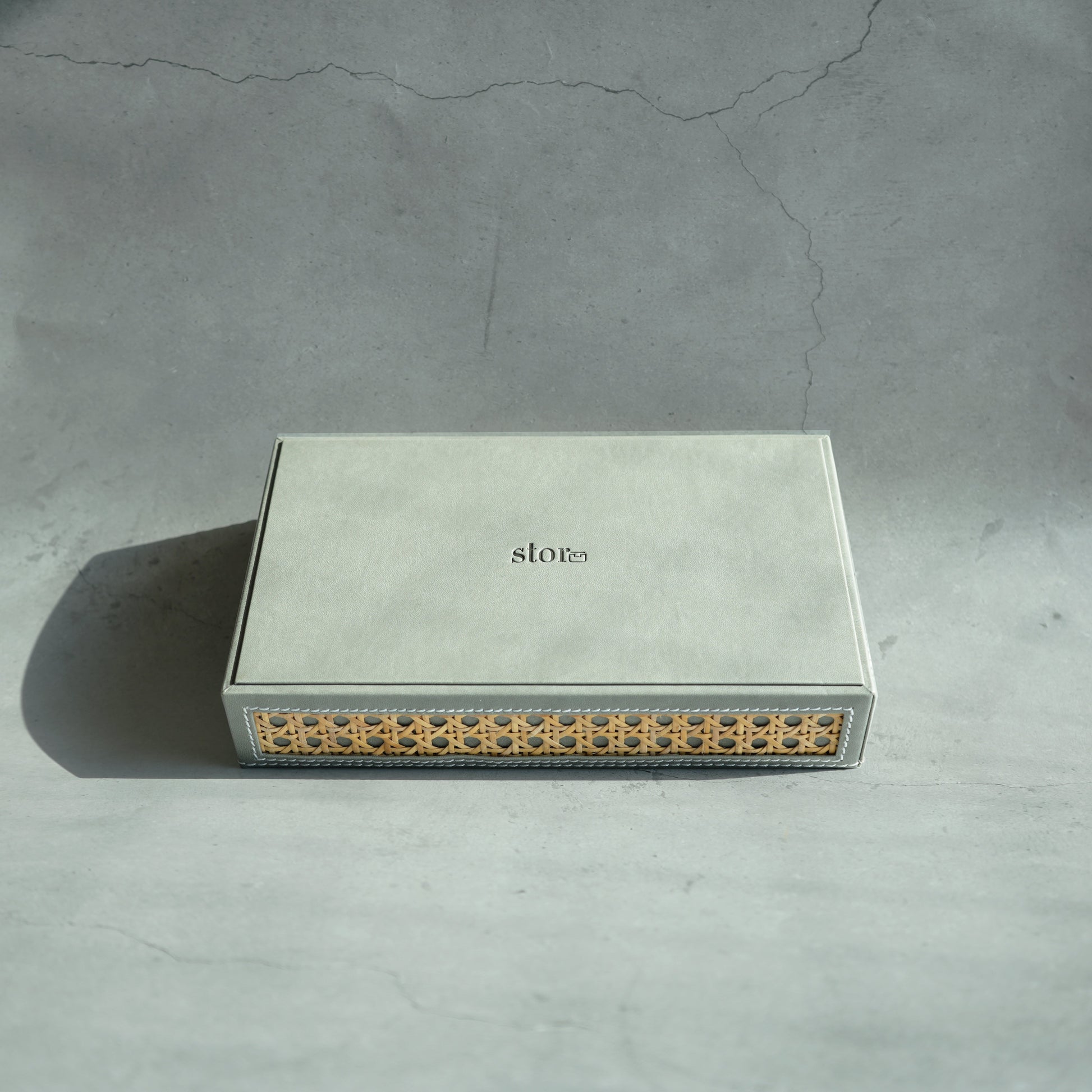 Stone Gray PU Leather & Rattan Serving Tray - Small