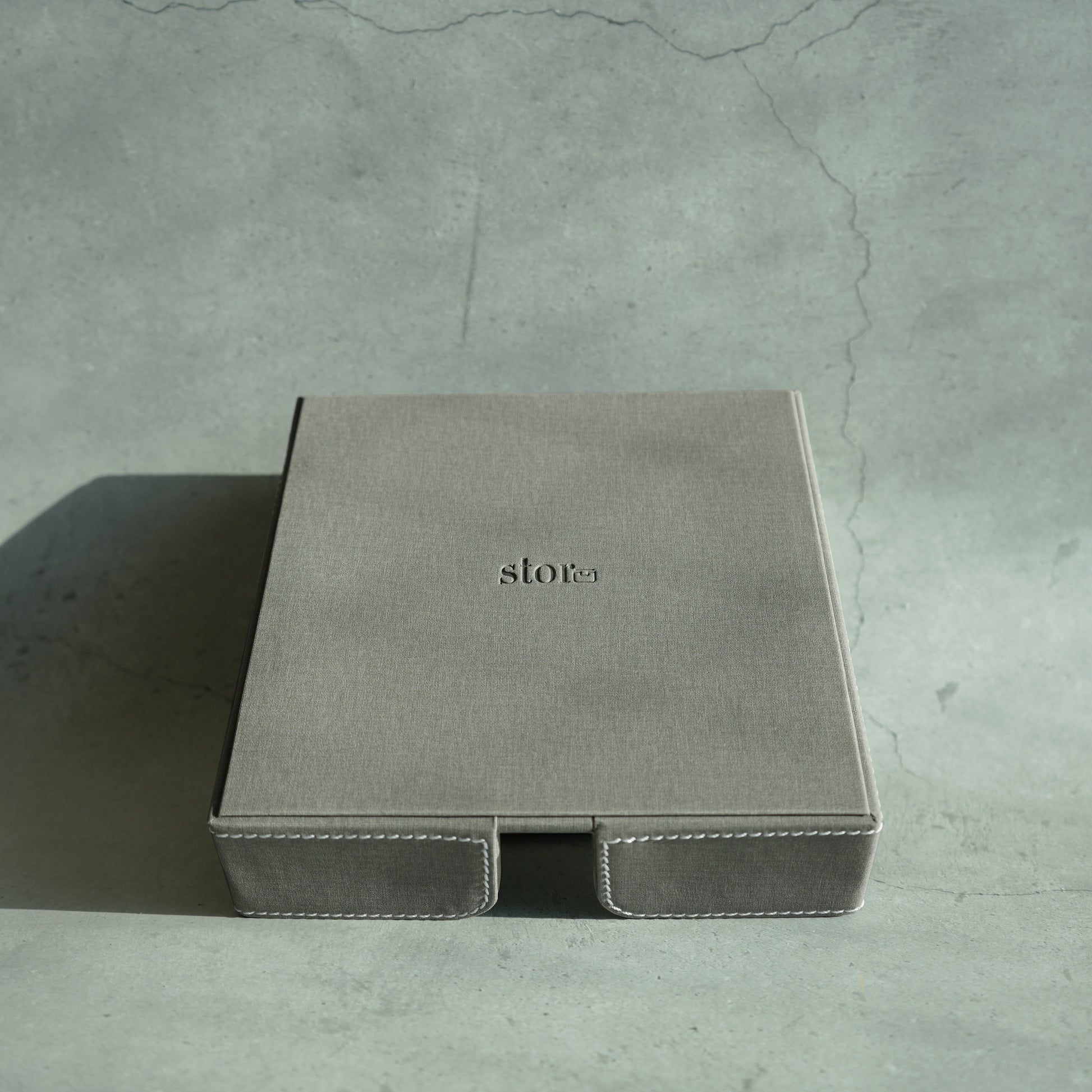 Stone Gray PU Leather Tissue Holder with Weighted Bar