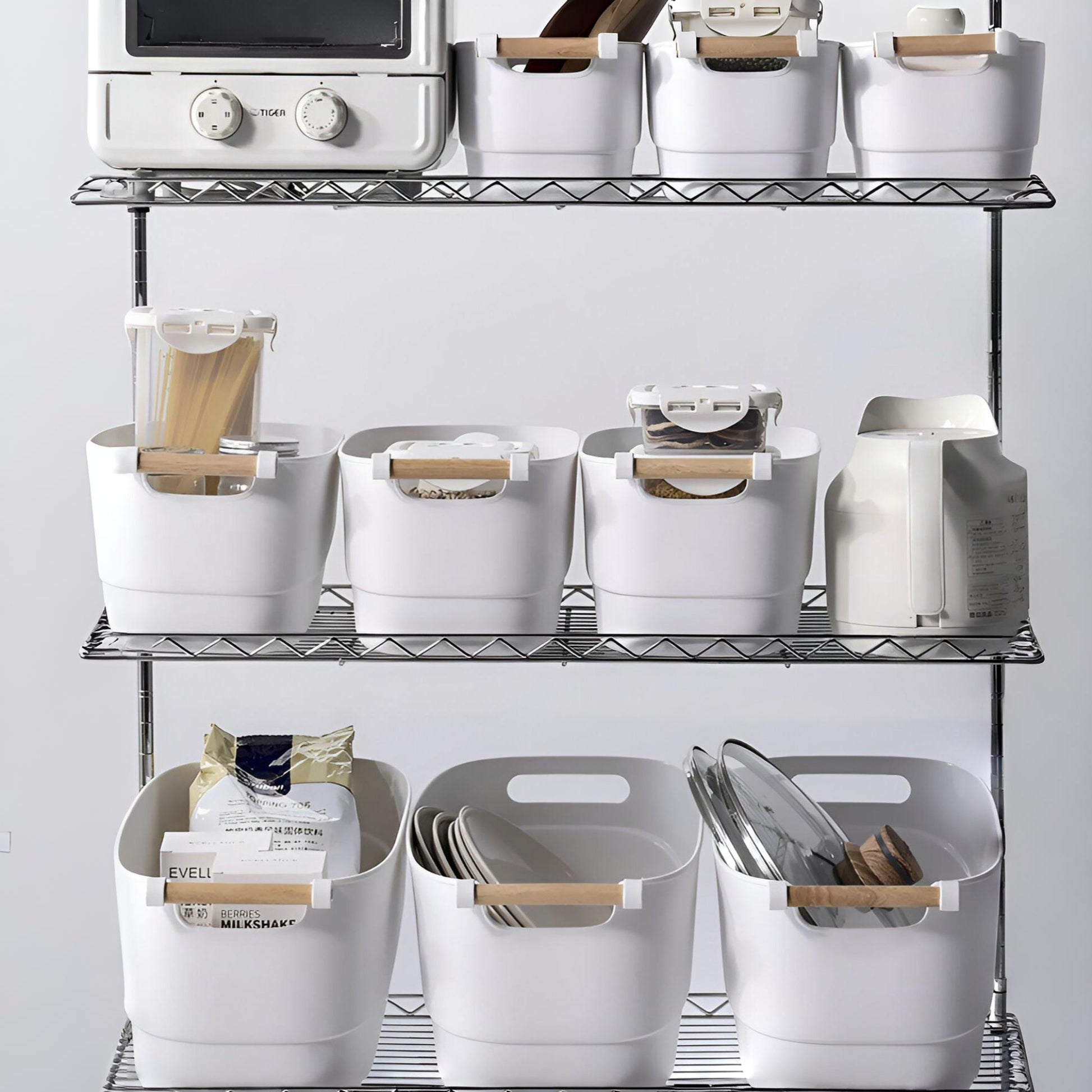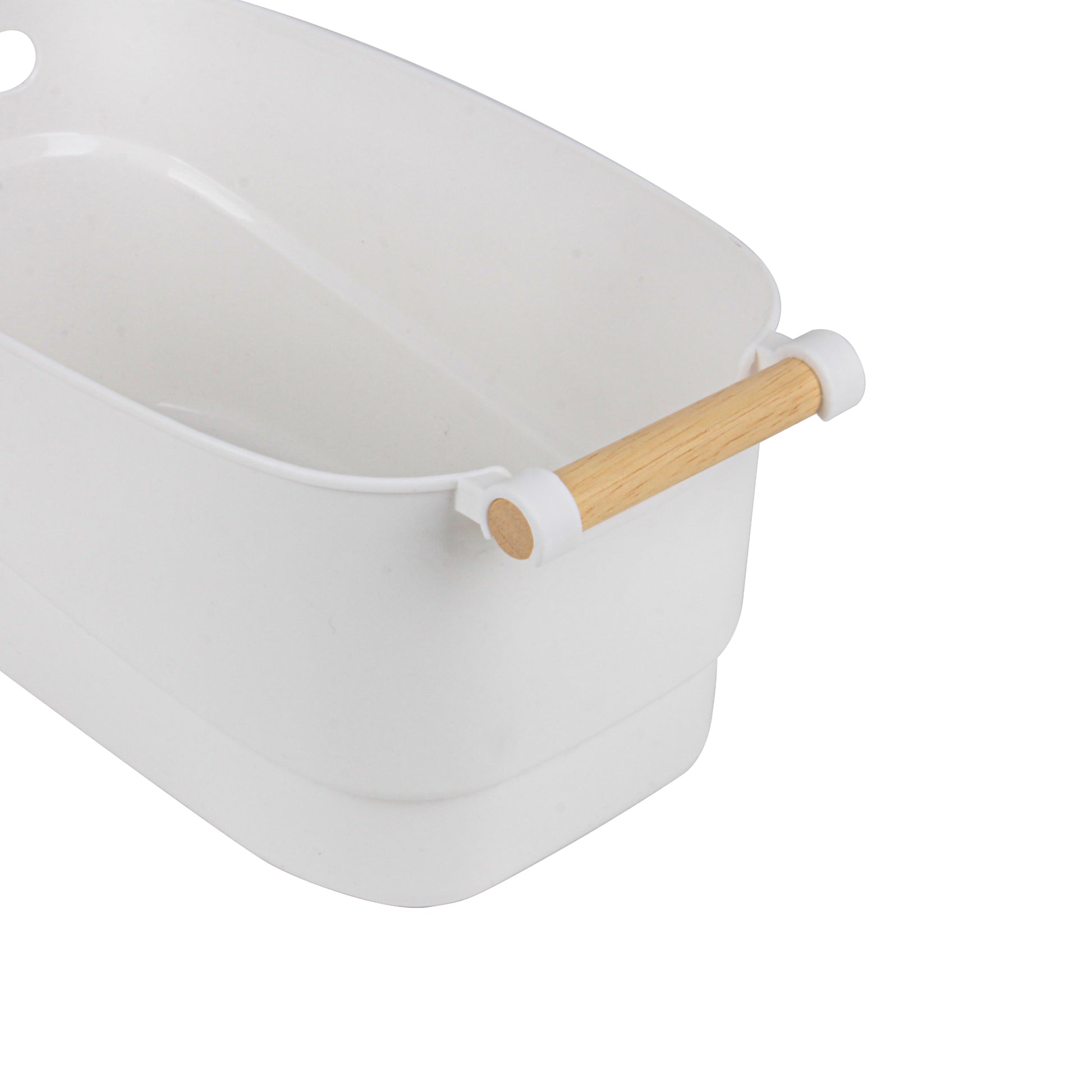 Organize effortlessly with our Storage Bin with Wooden Handle, crafted from sturdy white polypropylene and accented with smooth wooden handles for a touch of warmth and elegance. Ideal for pantry essentials, cleaning supplies, or home accessories, it combines functionality with modern design, making storage both easy and aesthetic.